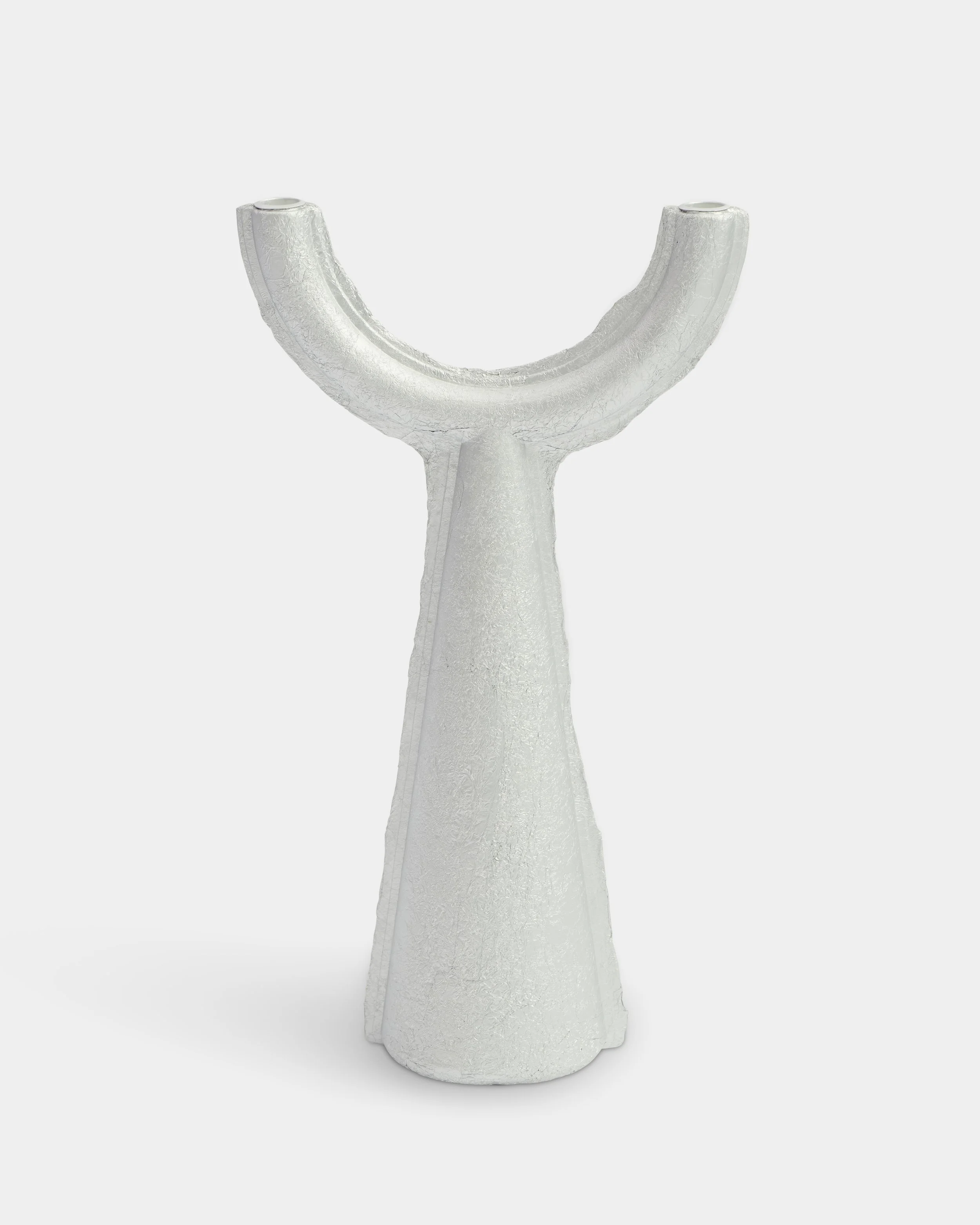 The series is created out of pressed tinfoil. This technique allows him, as it were, to mold the material. As a result, interminable possibilities and shapes can arise, which is inspiring to him. In his designs both techniques as material lead to the final form.