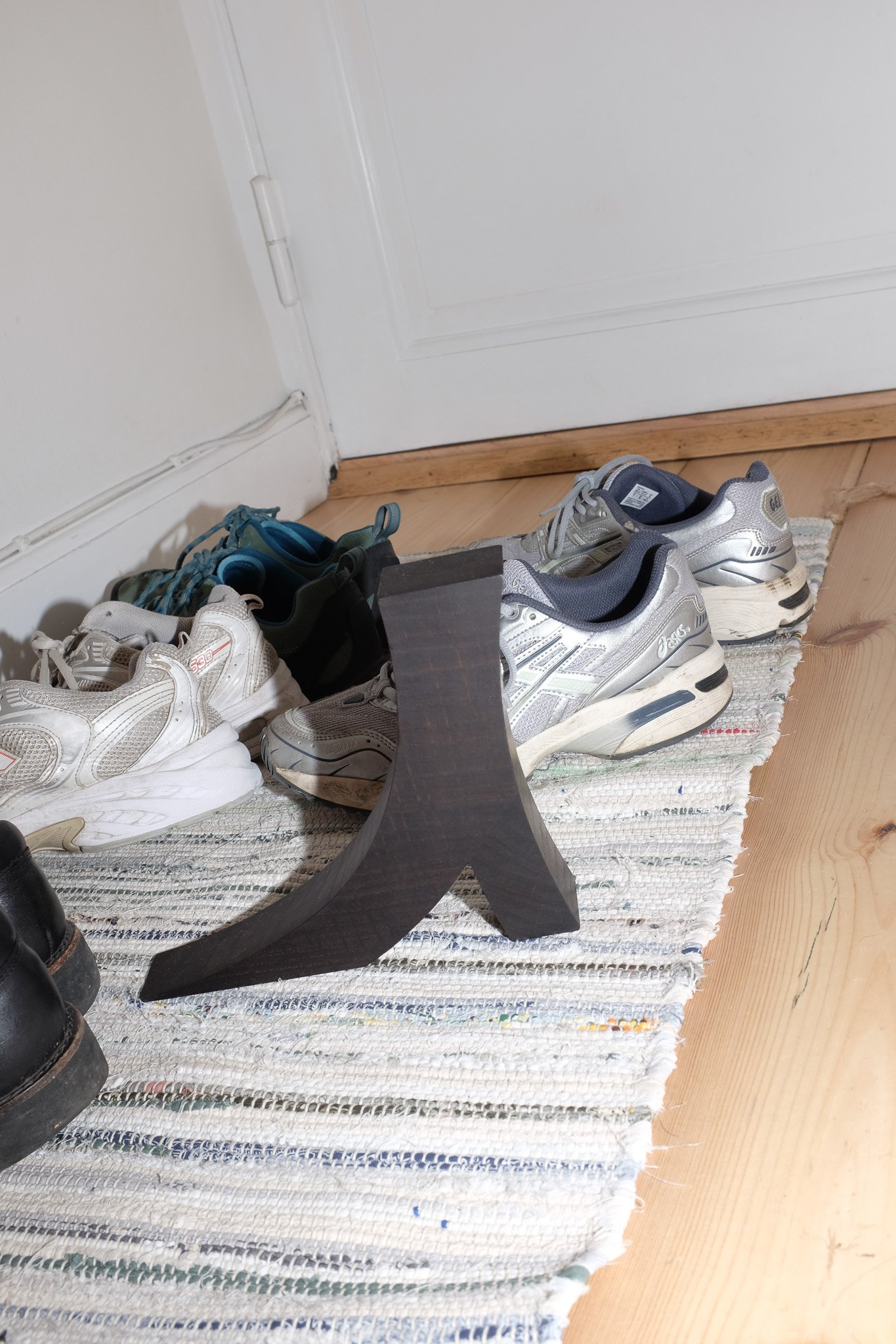 The shoe consists of two components, the heel and the boot. They are glued together with a dowel joint during production. Includes two self-adhesive anti-slip rubbers, which can be attached if the surface is slippery or the door to floor distance is greater.
