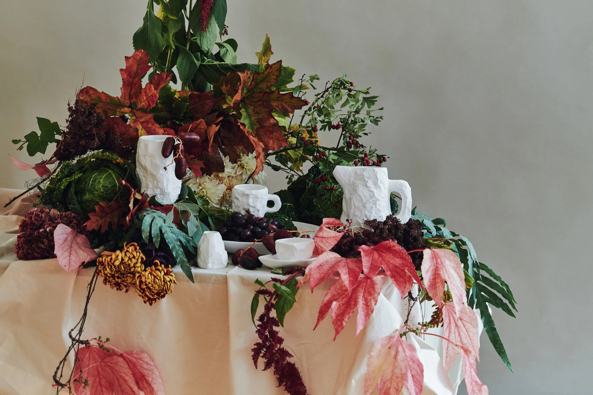 Crockery is a collection of fine bone china tableware slip-cast from plaster models carved by hand, with glazed interior for functionality and raw exterior reflecting the modest surface texture of the plaster original. Using the tools of a stonemason Max Lamb chips and carves a solid block of plaster to make a series of tableware, the design of each formed quite simply out of their own making.