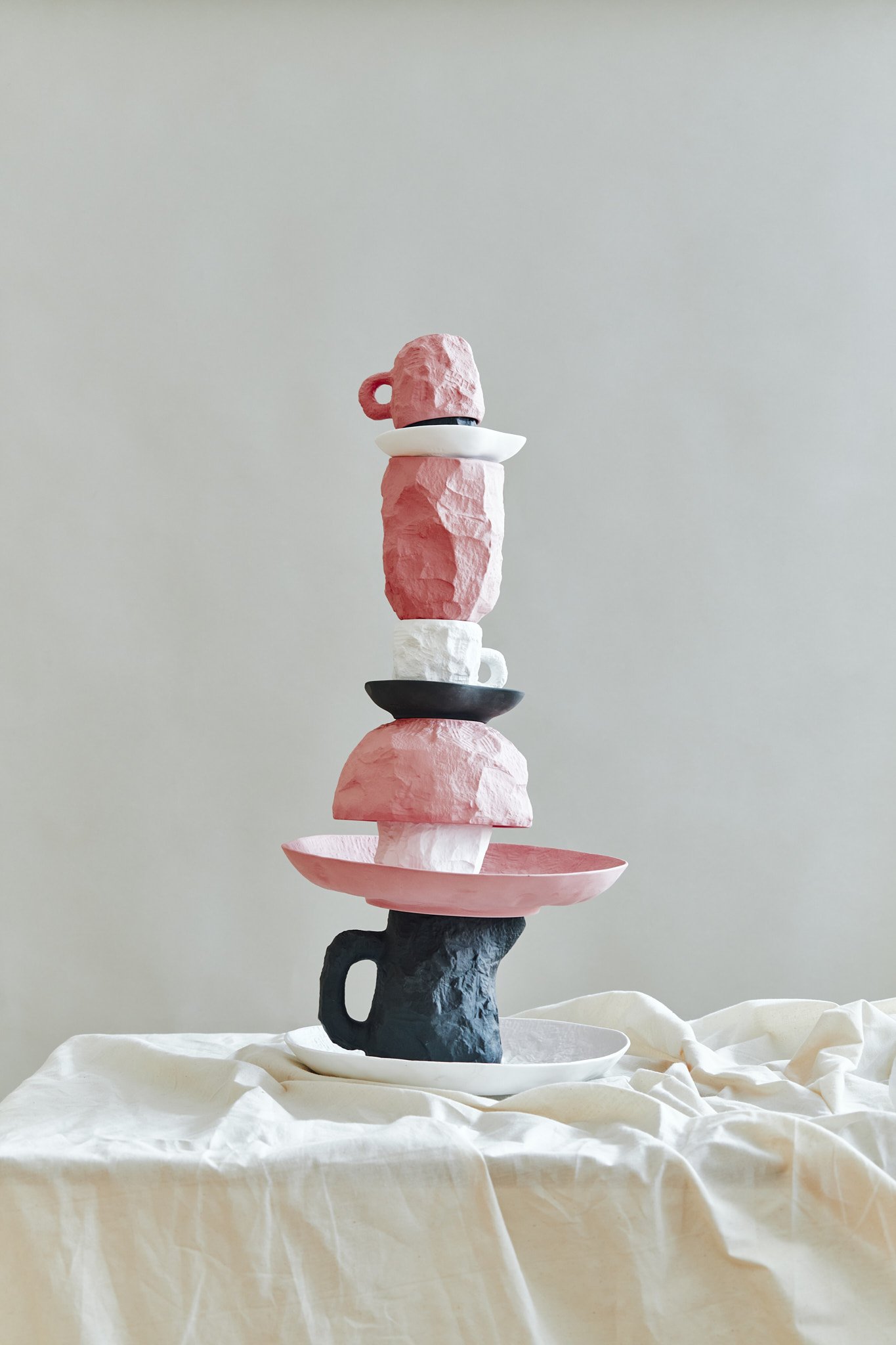 Crockery is a collection of fine bone china tableware slip-cast from plaster models carved by hand, with glazed interior for functionality and raw exterior reflecting the modest surface texture of the plaster original. Using the tools of a stonemason Max Lamb chips and carves a solid block of plaster to make a series of tableware, the design of each formed quite simply out of their own making.